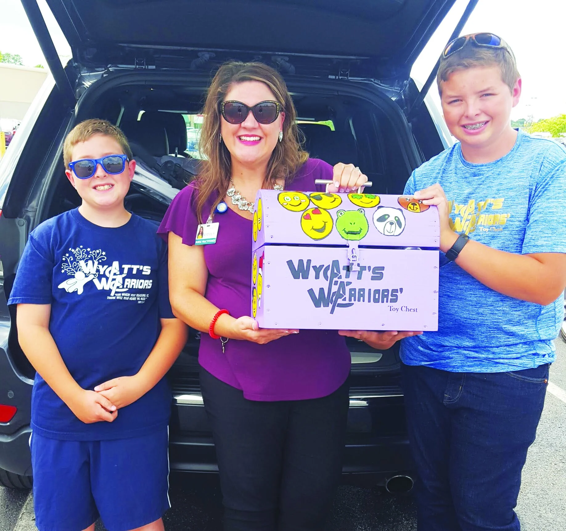 The name “Wyatt’s Warriors” comes from his church, Mount Hebron Baptist, who had a youth group program called Wednesday Warriors that would visit their friend in the hospital in 2014. The church also sponsors a yearly drive around Christmas that allows items to be purchased for refilling the chests.