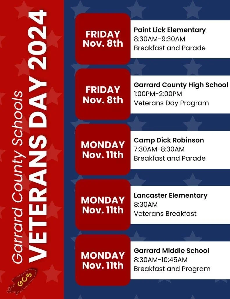 Garrard County High School will hold a dedicated Veterans Day program in the afternoon, allowing students to engage with and learn from the experiences of veterans.